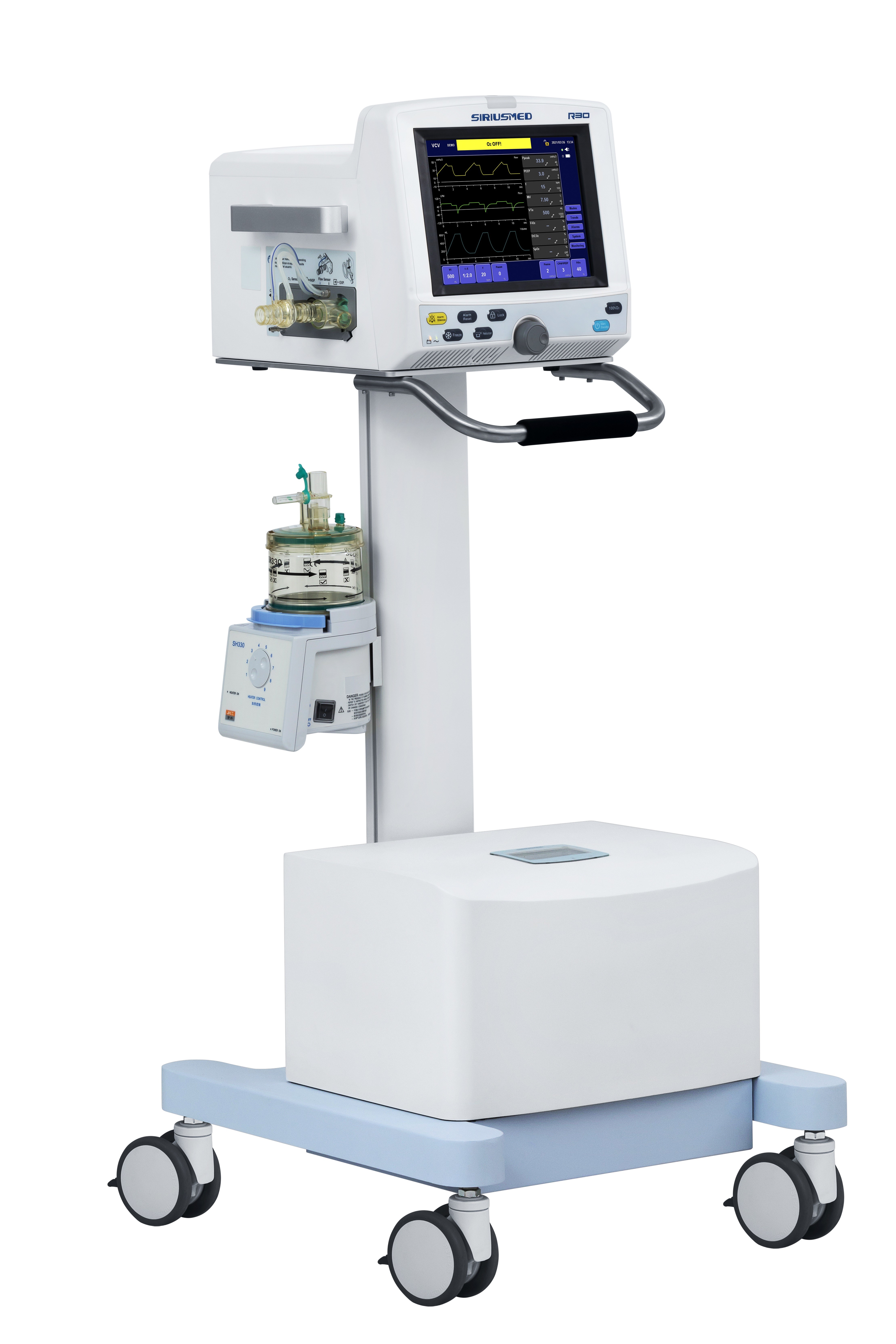 l 10,4“, TFT-vertoning, met touch screen L VCV, PCV, SIMV-VC, SIMV-P, CPAP/PSV, FACULTATIEVE STEUN (: Duophasic/APRV, NIV) l PT, voet, Facultatief V-T (: Co2-tijd, pulserate-tijd) l lijn: P-V, F-V l Ni-MH batterij, >120mins l RS232, VGA, USB, Ver alarm